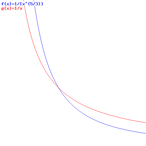 I should add one final note as to the functional form of PVγ = C. We can re-write it as P = C/Vγ. Because The shape of that graph is similar to the P = NkT/V relationship we started off with. Putting the two equations side by side, makes it clear our constant and temperature are obviously related one to another, but they are not directly proportional to each other. In fact, as the graphs below clearly show, the P = NkT/V gives us these isothermal lines on the pressure-volume graph (i.e. they show P and V are related at constant temperature), while the P = C/Vγ equation gives us the adiabatic lines. Just google an online function graph tool, and you can now draw your own diagrams of the Carnot cycle! Just change the denominator (i.e. the constants C and T in both equations). 🙂