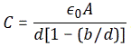 Now, because 0 < 1 − b/d < 1, we have a factor (1 − b/d)−1 that is greater than 1. So our capacitor will have greater capacity which, remembering our C = Q/V and U = (1/2)·C·V2, formulas, implies (a) that it will store more charge at the same potential difference (i.e. voltage) and, hence, (a) that it will also store more energy at the same voltage.