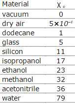 So… As Feynman puts it: “We have explained the observed facts. When a parallel-plate capacitor is filled with a dielectric, the capacitance is increased by the factor 1+χ.” The table below gives the values for various materials. As you can see, water’d be a great dielectric… if it wouldn’t be so conducive. 🙂