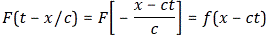 To see how it works, suppose we add some time Δt to the argument of our wave function f, so we’re looking at f[x−c(t+Δt)] now, instead of f(x−ct). Now, f[x−c(t+Δt)] = f(x−ct−cΔt), so we’ll get a different value for our function—obviously! But it’s easy to see that we can restore our wave function F to its former value by also adding some distance Δx = cΔt to the argument. Indeed, if we do so, we get f[x+Δx−c(t+Δt)] = f(x+cΔt–ct−cΔt) = f(x–ct). You’ll say: t − x/c is not the same as x–ct. It is and it isn’t: any function of x–ct is also a function of t − x/c, because we can write: