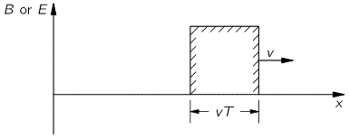 We also showed how the wave would look like if we would turn off its First Cause after some time T, so if the moving sheet of charge would no longer move after time T. We’d have the following pulse traveling through space, a rectangular shape really:
