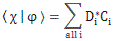 〈 χ | φ 〉 = ∑ Di*Ci = ∑〈 χ | i 〉〈 i | φ 〉,