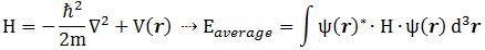 - As for the integral, it’s an integral over some volume, so that’s what the d3r shows. Many authors use double or triple integral signs (∫∫ or ∫∫∫) to show it’s a surface or a volume integral, but that makes things look very complicated, and so I don’t that. I could also have written the integral as ∫ψ(r)*·H·ψ(r) dV, but then I’d need to explain that the dV stands for dVolume, not for any (differental) potential energy (V).