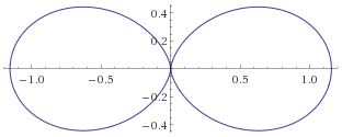 The origin is now referred to as the pole – like in North or South Pole indeed. 🙂 The straight lines from the pole (like the diagonals, for example, or the axes themselves, or any line in-between) measure the distance from the pole which, in this case, goes from 0 to 10, and we can connect the equidistant points by a series of circles – as shown in the illustration also. These lines from the pole are defined by some angle – which we’ll write as θ to make things easy 🙂 – which just goes from 0 to 2π = 0 and then round and round and round again. The rest is simple: you’re just going to graph a function, or an equation – just like you’d graph y = ax + b in the Cartesian plane – but it’s going to be a polar equation. Referring back to our p-orbitals, we’ll want to graph the cos2θ = ρ equation, for example, because that’s going to show us the shape of that probability density function for l = 1 and m = 0. So our graph is going to connect the (θ, ρ) points for which the angle (θ) and the distance from the pole (ρ) satisfies the cos2θ = ρ equation. There is a really nice widget on the WolframAlpha site that produces those graphs for you. I used it to produce the graph below, which shows the 1.1547·cos2θ = ρ graph (the 1.1547 coefficient is the normalization coefficient a).