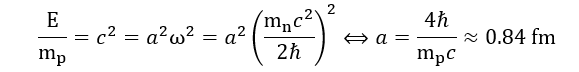 As mentioned several times already, we think of the proton oscillation as an orbital oscillation in three rather than just two dimensions. We, therefore, have two (perpendicular) orbital oscillations, with the frequency of each of the oscillators given by ω = E/2ħ = mc2/2ħ (energy equipartition theorem), and with each of the two perpendicular oscillations packing one half-unit of ħ only.[9] Such spherical view of a proton fits with packing models for nucleons and yields the experimentally measured radius of a proton: