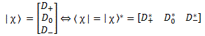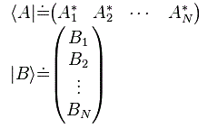 The only thing we’re doing here is to substitute 〈 χ | and | φ 〉 for ∑ Dj*〈 j | and ∑ | i 〉 Ci respectively. All the rest follows. Finally, I promised I’d tell you the difference between a state and a state vector. It’s subtle and, in practice, the two concepts refer to the same. However, we write a state as a state, like ψ or, if it’s a base state, like I, or ‘up’, or whatever. When we say a state vector, then we think of a set of numbers. It may be a row vector, like the 〈 χ | row vector with the Di* coefficients, or a column vector, like the | φ 〉 column vector with the Di* coefficients. But so if we say vector, then we think of a one-dimensional array of numbers, while the state itself is… Well… The state. So that’s some reality in physics. So you might define the state vector as the set of numbers that describes the state. While the difference is subtle, it’s important. It’s also important to note that the 〈 χ | and | χ 〉 state vectors are different too. The former appears as the final state in an amplitude, while the latter describes the starting condition. The former is referred to as a bra in the 〈 χ | φ 〉 bra-ket, while the latter is a ket in the 〈 φ | χ 〉 = 〈 χ | φ 〉* amplitude. 〈 χ | is a row vector equal to ∑ Di*〈 i |, while | χ 〉 = ∑ Di | χ 〉. So it’s quite different. More in general, we’d define bras and kets as row and column vectors respectively, so we write: