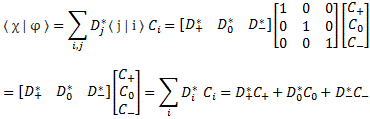 〈 χ | φ 〉 = ∑〈 χ | i 〉〈 i | φ 〉 =∑ Di*Ci = ∑ Di*〈 i | φ 〉