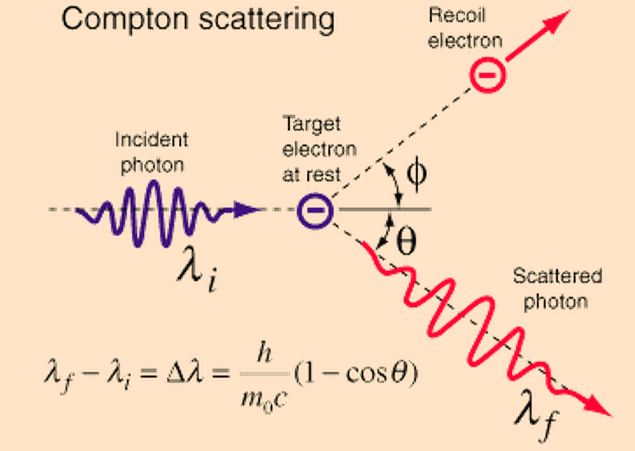 Now, that would suggest that, when push comes to shove, the Uncertainty Principle only describes some indeterminacy in the so-called Compton scattering of a photon by an electron. This Compton scattering is illustrated below: it’s a more or less elastic collision between a photon and electron, in which momentum gets exchanged (especially the direction of the momentum) and – quite important – the wavelength of the scattered light is different from the incident radiation. Hence, the photon loses some energy to the electron and, because it will still travel at speed c, that means its wavelength must increase as prescribed by the λ = h/p de Broglie relation (with p = E/c for a photon). The change in the wavelength is called the Compton shift. and its formula is given in the illustration: it depends on the (rest) mass of the electron obviously and on the change in the direction of the momentum (of the photon – but that change in direction will obviously also be related to the recoil direction of the electron).