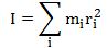 Just like linear momentum, angular momentum is also a product of two factors: the first factor is the angular velocity ω, and the second factor is the moment of inertia. The moment of inertia is denoted by I so we write L = Iω. But what is I? If we’re analyzing a rigid body (which is what we usually do), then it will be calculated as follows: