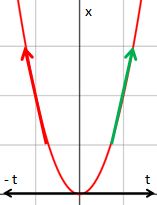 I already introduced the concept of even and odd variables above. It’s obviously linked to some symmetry/asymmetry. The x(t) curve above is symmetric. It is obvious that, if we would change our coordinate system to let x(0) equal x(0) = 0, and also choose the origin of time such that v(0) = 0, then we’d have a nice symmetry with respect to the vertical axis. The graph of the quadratic function below illustrates such symmetry.