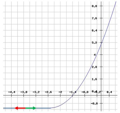 What’s going on here? Well… Rest assured: it’s actually quite simple: because the car or that rocket in our movie are real-life objects which were actually at rest before t = –2.5, the left side of the graph above is – quite simply – not relevant: it’s just a mathematical thing. So it does not depict the real-life trajectory of an accelerating car or rocket. The real-life trajectory of that car or rocket is depicted below.