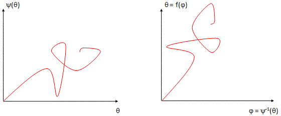 Huh? Yes. The idea is the following here: we like to think of the wavefunction as the dependent variable: both its real as well as its imaginary part are a function of x and t, indeed. But what if we’d think of x and t as dependent variables? In that case, the real and imaginary part of the wavefunction would be the independent variables. It’s just a matter of perspective. We sort of mirror our function: we switch its domain for its range, and its range for its domain, as shown below. It all makes sense, doesn’t it? Space and time appear as separate dimensions to us, but they’re intimately connected through c, ħ and the other fundamental physical constants. Likewise, the real and imaginary part of the wavefunction appear as separate dimensions, but they’re intimately connected through π and Euler’s number, i.e. through mathematical constants. That cannot be a coincidence: the mathematical and physical ‘space’ reflect each other through the wavefunction, just like the domain and range of a function reflect each other through that function. So physics and math must meet in some kind of union—at least in our mind, they do!