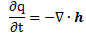 The h in this equation is, obviously, not Planck’s constant, but the heat flow vector, i.e. the heat that flows through a unit area in a unit time, and h is, obviously, equal to h = −κ∇T. And, of course, you should remember your vector calculus here: ∇· is the divergence operator. In fact, we used the equation above, with ∇·h rather than ∇2T to illustrate the energy conservation principle. Now, you may or may not remember that we gave you a similar equation when talking about the energy of fields and the Poynting vector: