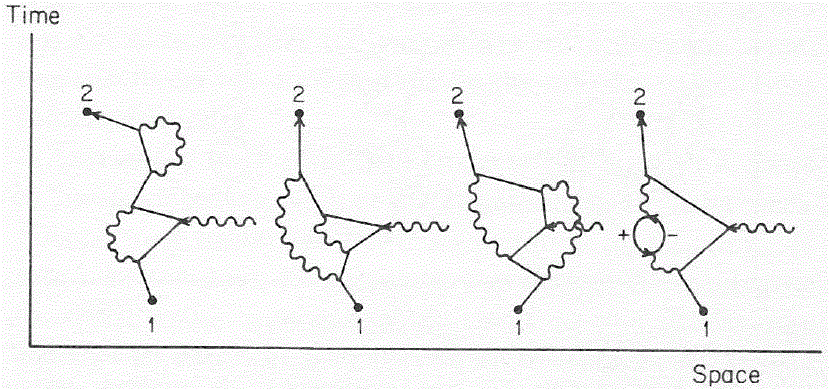 Now, I think you’ll agree with me that Feynman doesn’t answer my (our) question in regard to the ‘weird paths’. In fact, all of the diagrams he uses assume straight or nearby paths. Let me re-insert two of those diagrams below, to show you what I mean.