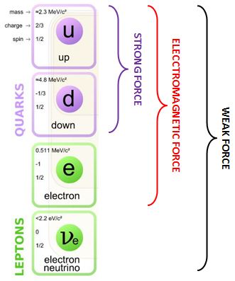 You may wonder if neutrino-electron interaction always involve the weak force. The answer to that question is simple: Yes ! Because they do not carry any electric charge, and because they are not quarks, neutrinos are only affected by the weak force. However, as evidenced by all the stuff I wrote on beta decay, you cannot turn this statement on its head: the weak force is relevant not only for neutrinos but for electrons and quarks as well ! That gives us the following connection between forces and matter: